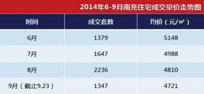 在这场自“限购令”发布以来最大的一次降价潮中,南充也自然未能幸免。居于三线城市队列的南充,虽然全国整体市场趋势蔓延“扫尾”存在一个过渡时差。但据南充金地营销市场研究中心统计,2014年6月至8月,南充房价已连续3个月呈现下跌趋势。截止9月23日,南充住宅均价相比6月跌幅达8.29%。