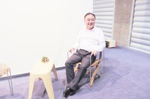 曲美家具总裁赵瑞海坐在自己支持的设计作品上,乐不可支。