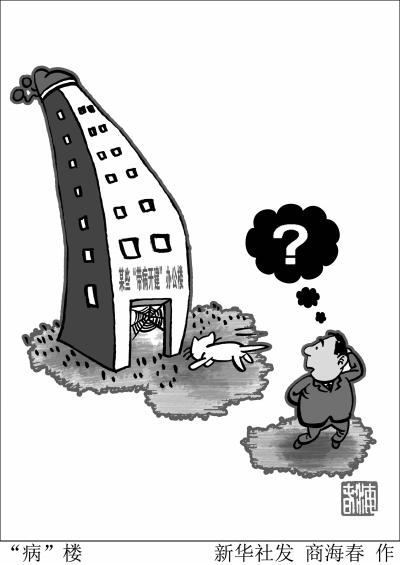 记者近期调查发现,全国多地出现类似的新建办公楼“停工闲置”现象。如位于河南省遂平县107国道旁的“创业大厦”,占地127亩,投资1.2亿元。这组高约10层的楼群主体工程已经封顶,但已停建一年多。