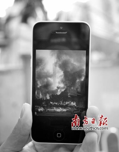 目击者拍摄到工地宿舍起火的画面。肖雄 摄