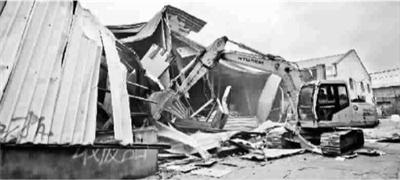 上午9时许,在确认所有人员全部清场的情况下,挖掘机开进厂区实施破拆,违法建筑轰然倒塌。同时,另一台挖掘机驶入厂房背后,很快将二层宿舍楼夷为平地。