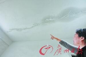 张阿姨指着楼顶漏水处。广州日报记者高鹤涛 摄