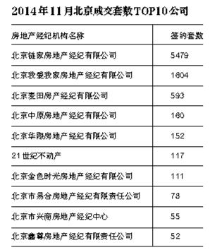 11月,北京楼市改善型需求放量,专注中高端二手房交易的麦田和中原房地产排名上升。