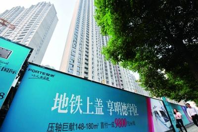 地铁来了,地铁沿线物业纷纷打出“地铁牌”。 记者 田超 摄