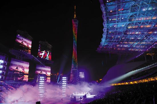 2014广州国际灯光节上的亚运建筑 羊城晚报记者 林桂炎 摄
