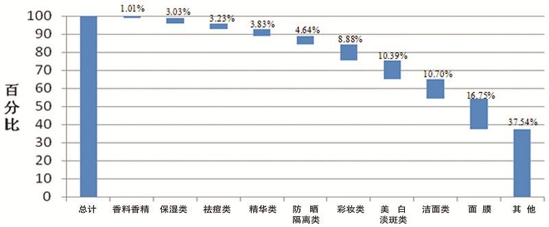 上述《报告》显示,有32%的受访者在日常使用化妆品的过程中遇到过不良反应。在引起不良反应的产品类型中,面膜占比最高,达16.75%;此外包括具有美白淡斑、防晒隔离、洁面、祛痘、保湿等功效的产品以及精华、彩妆、香料精油类产品(见图1)。