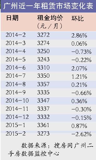 尽管租金价格跟不上楼价上涨速度,但租房压力大成为部分租客搬离市区中心的原因。据南方人才市场发布的《2014~2015年度广东地区薪酬调查报告》显示,在广州工作多年的白领平均月薪为6830元,若按小夫妻2人计算,租住两房住宅的租金支出占家庭收入的两成五左右。