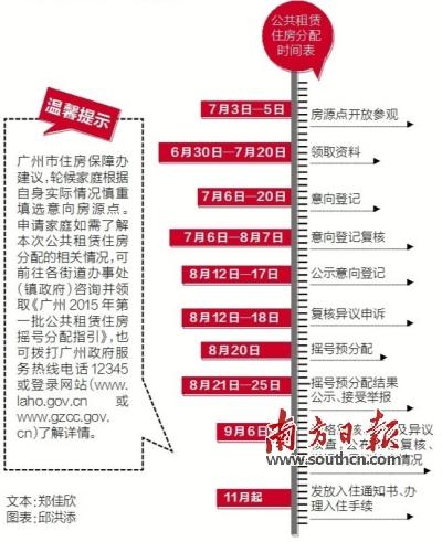 广州堪称史上最强大的近万套公租房供应杀到。记者29日从广州市住房保障办获悉,广州市2015年推出分配第一批9831套公共租赁住房,分别位于荔湾、天河、黄埔、白云四区,7月6日起接受符合公共租赁住房配租条件的家庭意向登记,并于2015年8月20日公开进行摇号预分配。