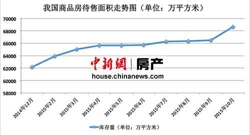 近日政府高层连续提出应化解房地产库存,促进房地产业持续发展的要求。从国家统计局提供的库存数据来看,10月末,我国商品房待售面积68632万平方米,比9月末增加2122万平方米。而今年楼市库存整体也呈上涨趋势,除五月份库存下降了15万平方米外,其他月份均为上涨,已经从年初的62169万平方米涨到了68632万平方米。
