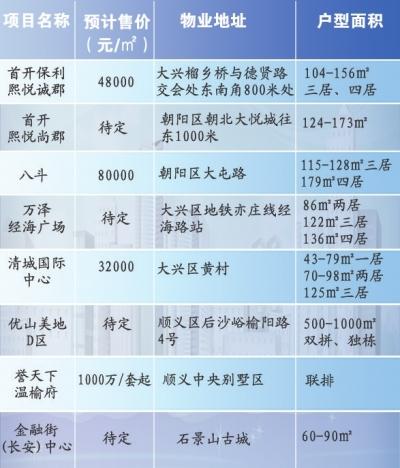 在预计3月入市的项目当中,地处四五环之间的改善型住宅项目多达6个,其中包括东四环的首开·熙悦尚郡、南四环的首开保利·熙悦诚郡、北四环的八斗以及西四环的大苑·海淀名著。从价格角度来看,南四环价格仍相对偏低,北四环八斗项目报价已高达80000元/平方米,南四环首开·熙悦诚郡报价仍仅48000元/平方米。