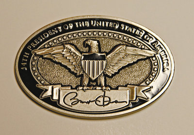 总统还送每人一盒M&M巧克力糖以及一枚纪念币。纪念币做工精致,并有总统的签名。应记者要求,陈高歌的家人为纪念币拍下照片,与大家分享。(黄美惠)