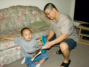 蒂姆2岁前已被发现行为异常,经诊断后,证实患上自闭症,现时正接受早期干预治疗(early intervention treatment),每周几日都有行为治疗师登门,替他治疗。为了照顾蒂姆,本来在加国连锁快餐店任职的陈先生,不惜辞去工作,全职在家照顾他。
