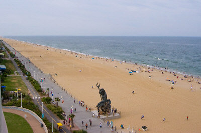 美国境内的上乘海滩一半以上集中在东南角的佛罗里达州,维吉尼亚海滩则是东北部少数景色优美的海滩之一,受到许多新英格兰地区游客的青睐。维吉尼亚海滩位于维吉尼亚州的东北角,介于大西洋和切萨皮克湾(Chesapeake Bay)之间,紧邻有“世界第二大海军基地”之称的诺福克(Norfolk)、汉密尔顿(Hamilton)以及切萨皮克(Chesapeake)几个大城市,形成维吉尼亚州最繁华的城市群。