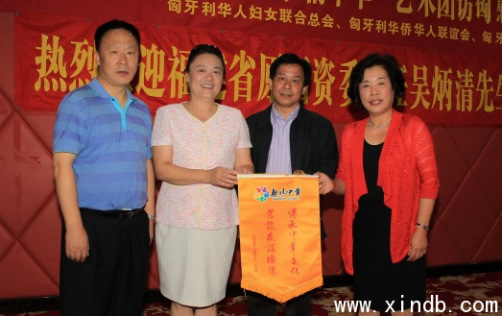 匈牙利华人妇女联合总会、匈牙利华侨华人联谊会、匈牙利《新导报》向艺术团赠送了锦旗和纪念品,艺术团回赠了书写着“传承中华文化 架设友谊桥梁”的锦旗。晚宴中还表演了精彩的文艺节目。侨胞艺术家纷纷登台,他们精湛的演出和高水平赢得了慰问团演员和侨胞们一阵阵热烈的掌声,情浓之际,艺术团的演员们也上台同侨胞们一起放开歌喉,有的还情不自禁的跳起了民族舞蹈。(王于燕)