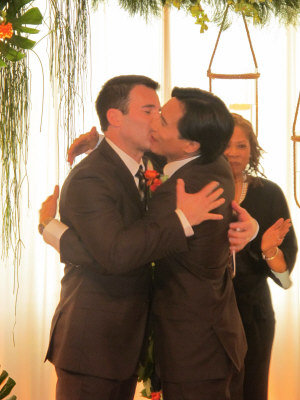 美华裔“同志”与相恋18年恋人帝国大厦结婚(图)