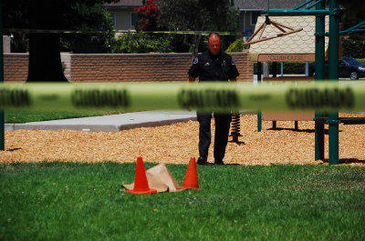 Pinvidic表示,六名警察和三辆警车很快到达现场,只见一名男子手持一把一呎余长大刀,上身赤裸,只穿一条短裤,到处乱舞。看到警察过来,男子立即向公园的另一方向狂奔,并很快进入一户人家后院。