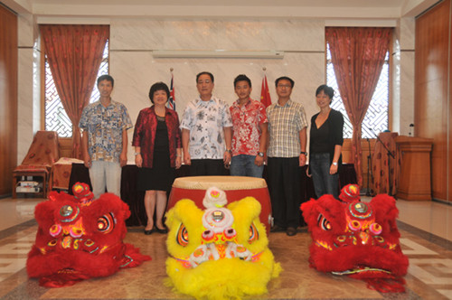 中国驻斐济大使向斐济华人社团捐赠舞狮(图)