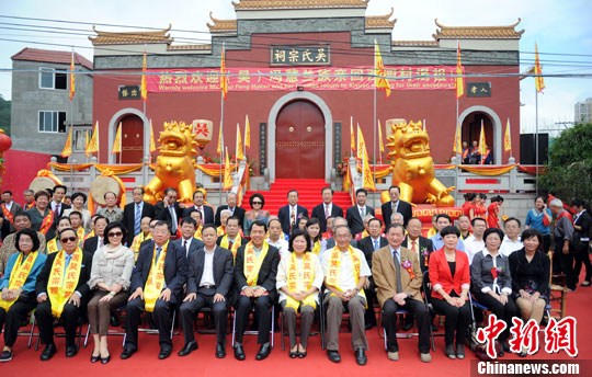 10时许,冯慧兰带着家人在宗亲的引导下,踏入供奉着其先祖牌位的吴氏宗祠,并双手奉酒,静默沉思。随后,由宗祠执事宣读祭文,冯慧兰及其家人完成了叩拜、上香、献花篮等祭祖传统礼仪。