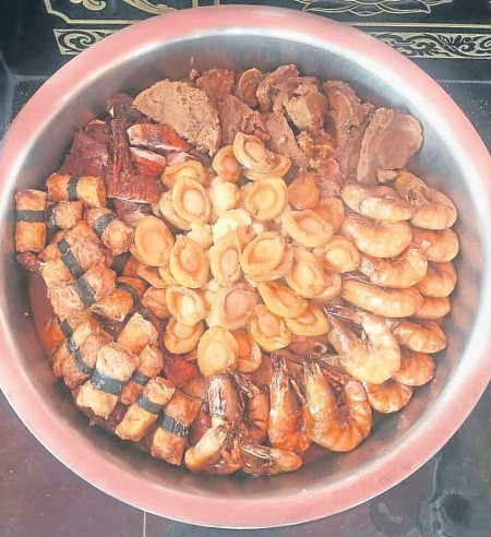 30人份量的大盆菜, 需要大铁盆才能容下所有的材料。