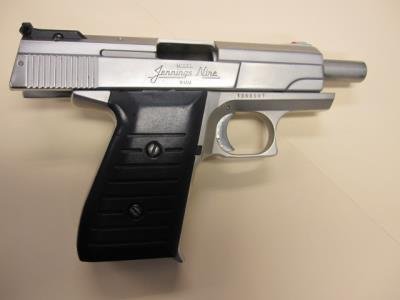 在两名嫌犯身上发现的手枪。(美国《世界日报》/警方提供)