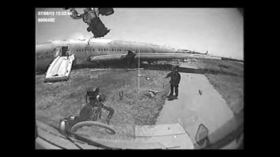 11:27 飞机坠毁,叶梦圆一开始被放在空地上。几分钟后,吉米·尹驾驶的消防车赶到现场。飞机上黑烟滚滚,这辆消防车数次停下来,等被疏散的乘客们走过。