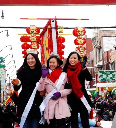 报道称,当地时间2月2日下午,芝加哥中国城人山人海,在鞭炮声和舞龙舞狮、各种乐队表演的热闹气氛中,由50多个方队和15辆花车等组成的游行队伍通过华埠主要街道永活街,受到在道路两侧观看的中外游客的欢迎。见面互道“新年快乐、恭喜发财、马到成功”等中文祝贺词,也成了许多说英语人士口中的时髦词汇。