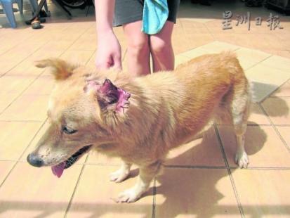 “我家的狗向来在住家范围活动,上周五深夜因多只野狗经过,狗儿就将头伸出篱笆门吠,却无法缩回头,因此被多只野狗攻击头部。当时我开着冷气睡觉,听不见屋外的狗吠声,还好保安人员及时将野狗赶走。我在次日发现狗儿的左耳被野狗咬去一半,流了很多血,我赶忙将狗儿送到兽医处治疗,狗儿还‘住院’2晚,花了300令吉。狗儿遇到野狗难免会吠,没想到却遭野狗攻击,也显示野狗非常具攻击性。”