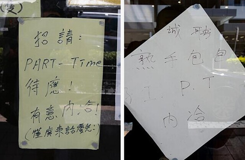 《每日电讯报》23日走访了Parramatta教堂街(Church Street)的3间餐馆,每间窗户上都贴有手写的招工广告。Sun Ming BBQ Restaurant的一位员工说,他们要招一位新侍应。虽然广告的内容没有提到必须是中国人,但当这位员工被问到他们是不是要招中国人时,他说:“是的,我们需要中国人。”
