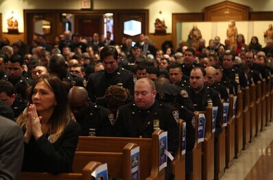 纽约殉职华裔警察弥撒 刘文健父母亲吻数百警察