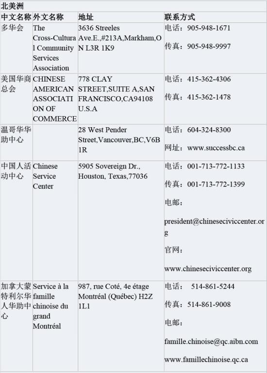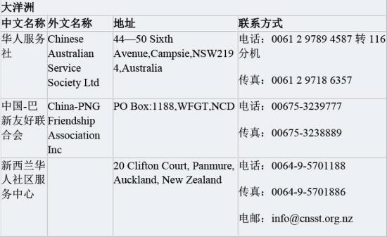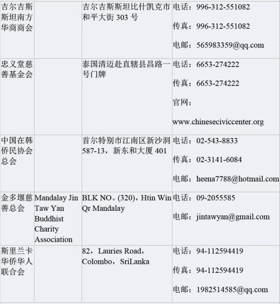 附各国 “华助中心”名单
