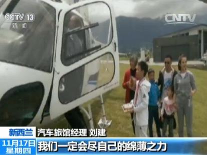 新西兰旅行社经营者 王莉梅:总领馆就说他们找不到飞机,这时候克赖斯特彻奇所有的直升机都被新西兰政府调用了。因为我本人做旅行社很多年,我有一些资源在南岛的南部没有受灾的地区,最终在南部的一个小镇,我找到一家经常合作的直升机公司,特别幸运的是,那天他们正好还有一架飞机。