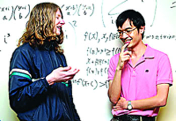 中新网9月3日电 据澳洲《星岛日报》报道,一个打扮随意,穿着粉红汗衣和灰色松身裤的亚洲男子和一个留着一头长发,来自城内的白人高中生在讲座上碰面。两个人看起来风马牛不相及,但他们有着共同的爱好——数学。被誉为“数学界莫扎特”的陶哲轩教授现在的任务是要推广数学。