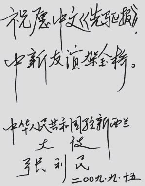 记者:请对新西兰的华侨、华人、留学生说几句心里话。