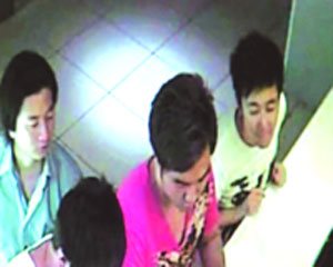 发放的图象是五男在案数小时前,在卡拉OK门外的情形。其中男子的纹身和衣着均很易辩认。