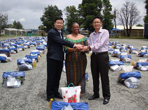 此次华人侨团为索维托300户贫困家庭捐赠了玉米面、食用油、糖,毛毯及衣物等家用物品,总价值约30万兰特。