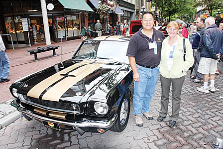 当日参展老爷车的华人不多,其中包括张友仁与妻子Joyce一起展出自己心爱的收藏品——1966年款的Shelby GT350H。这是专门为一家租车公司而特别生产的房车,而且还有租车公司特有的黑底金间条。