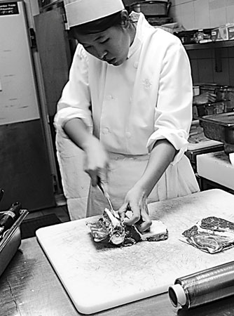 黄菲在这家五星级法国酒店餐厅的工作包括进货、切肉、熬汁,以及培训实习生等等。这几项工作听起来容易,但是技术含量都相当高。