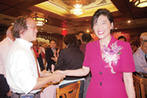 中新网9月3日电 据美国《星岛日报》报道,美国南加州侨界为庆祝赵美心成为有史以来第一位当选联邦众议员的华裔女性,1日特别在洛杉矶华埠举行盛大庆祝会,近300名老侨新侨一起祝贺这位华人之光。