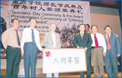 值得一提的是,高教部副部长何国忠博士也是郑教授的学生,28日的仪式也是由他亲手颁发牌匾给郑教授。