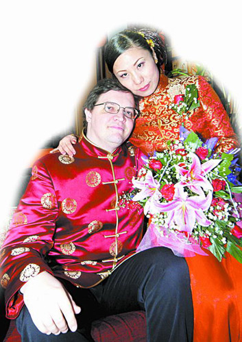 于是当Dan向她求婚时,Eve就应允了。那边的Dan在网络上立即发送“I love you so”并跟着一连串笑脸。更令人吃惊的是,Dan当时只有5000元存款,却用4800元定做了结婚戒指,并向母亲借钱买了机票,毫不犹豫地飞到中国,当时他只知道Eve住在杭州,连具体的地址都搞不清楚,为此Eve后来还开玩笑地对Dan说,如果当时我反悔了,不去机场接你,你在中国可就无家可归了。