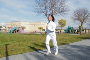 岑洁儒说,7月底接到通知时,虽还没最后确定路程和地点,但她已开始自我训练。报名表上提到,跑步路程在200米到400米之间,但现在温冬奥筹委会确认她传火炬路程是300米,火炬长90厘米,重量3.5磅。虽然VANOC指明传递方式除了慢跑,也可以用走或快步走方式,一切以火炬手的体能条件做自我考虑,但岑洁儒坚持跑完全程。她笑着说,还没老到要用“走路”方式,不过,她最大的担心是火炬重量。