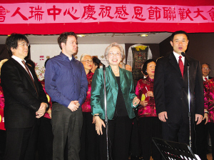 刘毛淑卿、陈受权先后讲话,多谢候任审计长在感恩节期间到人瑞与耆老一起欢度佳节。他们说,刘醇逸在八年市议员任职期间,发挥专长,政绩有目共睹。民众眼睛是雪亮的,所以,刘醇逸再获选民肯定,当选市审计长。可以说,刘醇逸是华人的光荣,代表华人的心声。