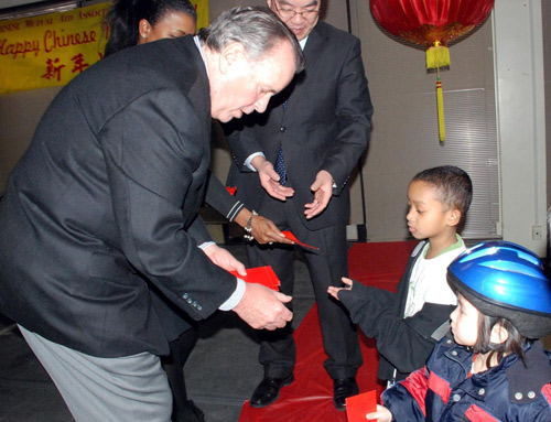 在布满红灯笼、虎画和彩带的大礼堂里,瑞狮合着欢乐的锣鼓声狂舞,一片喜庆祥和的节日气氛。戴利市长在讲话中向一百多位来宾热烈祝贺新春,他赞扬来自世界各地的移民为美国社会作出了巨大贡献,使芝加哥成为一个伟大的城市。同时由于有了更多的机会,各地的移民也越来越多。戴利还希望大家积极参与即将开始的全国人口普查,因为这将关系到政府的拨款怎样来分配,这对我们每个人来说都非常重要。“不论你是谁,也不论你来自什么地方,都要参加这次普查”,戴利说。