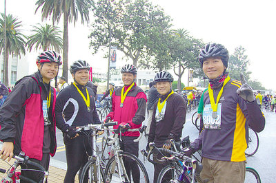 来自阿罕布拉市的黄伟勋、喜瑞都市的陈俊霖、廖炜锟、施礼标、陈锦汉职业、居住城市不同,但对自行车运动的共同爱好,成为好友,他们21日清晨6时就到达现场,天公不作美,但都完成26.2哩赛程,丝毫不受天气影响。