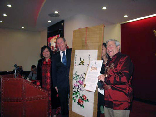 中国驻纽约总领事彭克玉、副总领事董晓军应邀出席了宴会,他们祝大家新春愉快,虎年大吉。