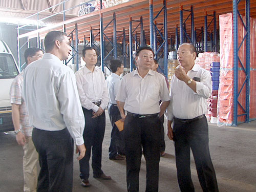 负责管理的秘鲁经理丹尼艾尔带领马儒沛等来宾,先后参观了生产车间以及仓库,丹尼艾尔介绍说,该工厂在秘鲁已有近30年的历史,由华人老企业家沈根源先生独资创立,目前雇有员工300余名,产品销往世界各地,其中80%的用于满足国内市场,20%用于出口,而总销售量则占整个拉美地区的第二位。