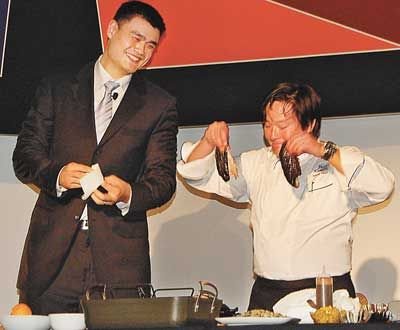 晚宴中最搞笑的节目莫过于华裔名厨蔡明昊教姚明制作北京烤鸭。蔡明昊不愧为艾美奖得主,烹饪的过程中妙语连珠,连平日口才不错的姚明都“抖”不出这么多“包袱”。