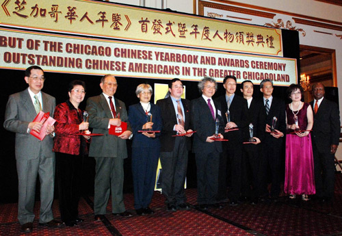 中新网3月30日电 据美国《芝加哥华语论坛》报道,当地时间28日晚,《芝加哥华人年鉴2009-10》首发式暨年度杰出华人颁奖典礼在芝加哥西郊珠瑞琏大饭店举行。伊利诺州州务卿杰西•怀特,伊利诺州州长高级政策顾问、州长亚裔联络官萨姆因•汗女士,芝加哥市长代表、芝加哥市长办公室副幕僚长李双振,中国驻芝加哥副总领事谢云亮、储茂明,侨务组长余海霞,以及大芝加哥地区侨界和社团组织的代表及各界人士三百多人应邀出席。