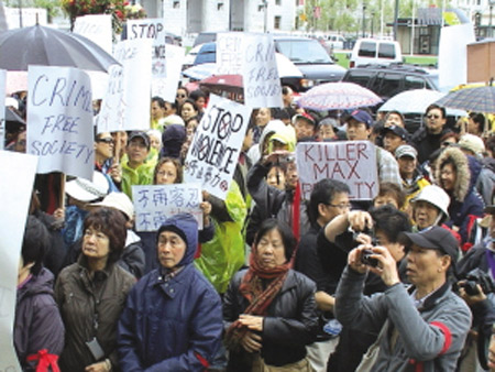 两个城市当局的不同处理方法,也引发华裔民众的不同反馈。旧金山的千名民众在4月27日下午2时,冒雨顶风来到市政府门前,要求当局严惩凶犯,保障市民出行安全。很多华裔受害人也在市议会的公听会中,现身说法,讲述自己被袭击、被抢劫的经过,要求当局予以重视。在重压之下,旧金山市长纽森宣布以历史上最高的悬赏金额10万元来缉拿凶嫌,警察局局长盖斯肯也在次日与华裔社区代表会面,承诺加派32名警员到访谷区和湾景区的事故多发地带巡逻,并将建立警察双语服务中心。