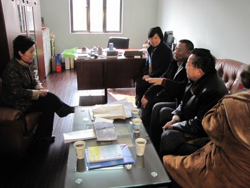 中新网1月6日电 据上海市侨办消息,2009年12月31日,在上海市侨商会理事沈炜敏的推荐下,艾库柯冷却塔(上海)有限公司总经理余根林,北美投资信息交流协会会长陆心棣等侨资企业家赴上海市松江区考察投资项目。上海市松江区侨办主任、侨联主席程瑜接待了沈炜敏一行。